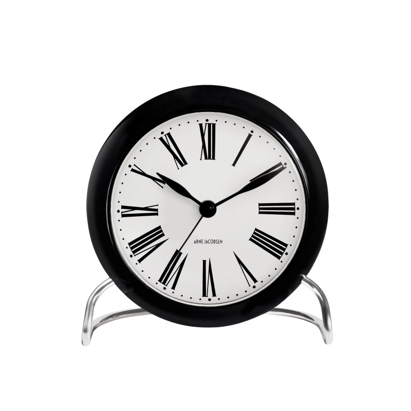 Det elegante Roman bordur blev designet af Arne Jacobsen i 1939. Uret er et af de to ure, Arne Jacobsen designede til Lauritz Knudsen, og netop denne model blev forløberen for uret til Aarhus Rådhus. Mål: Ø 11 x H 12 cm.