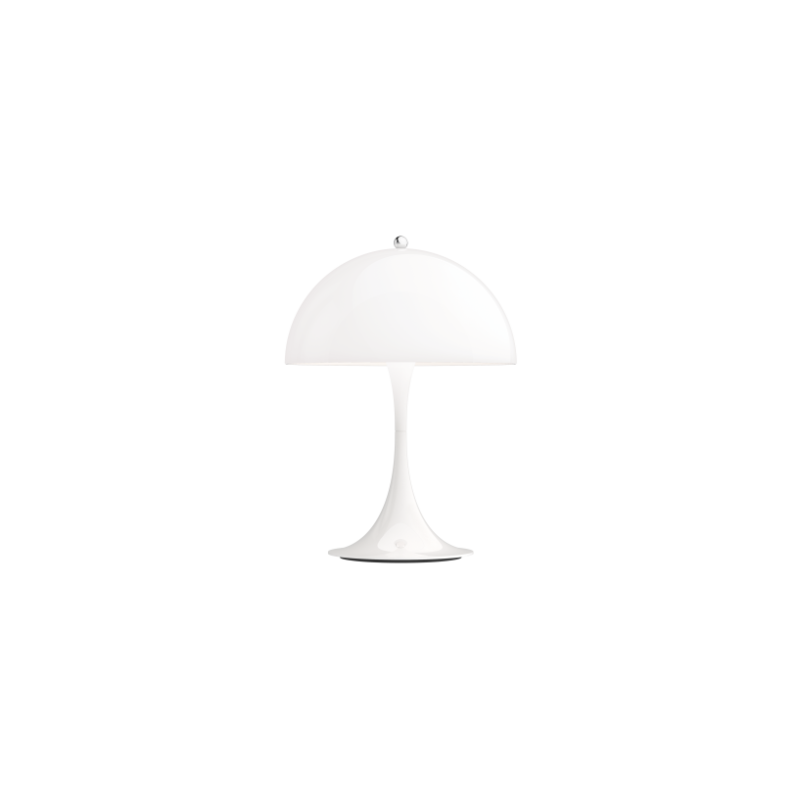 Panthella Portable 250 er en transportabel version af den populære Panthella bordlampe med en skærm på 25 cm. i diameteren, og oplades med det medfølgende USB-C-kabel.