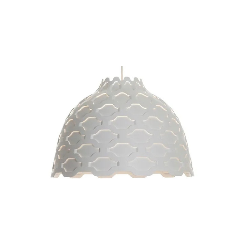 Louise Campbell har med LC Shutters pendel tilstræbt at skabe en både komfortabel og atmosfæreskabende belysning i såvel private som offentlige sfærer. Udgangspunktet er en flad aluminiumsplade, der bearbejdes til den klokkeformede skærm. Skærmens mønster standses og præges til to vekselvirkende lag, mellem hvilke lyset slippes ud i et millimeter nøjagtigt mønster. Den 3 mm tykke skærm giver en meget robust lampe, hvilket gør den velegnet lige fra børneværelser til direktionsgange. Det blødgjorte lys giver en behagelig atmosfære i rummet. LC Shutters er smuk i både tændt og slukket tilstand. Armaturet udsender et primært nedadrettet lys. Det perforerede mønster i skærmen medvirker til en svag oplysning af rummet omkring armaturet. Samtidig er perforeringerne medvirkende til at oplyse armaturets yderside på en dekorativ måde, når den er tændt, og dermed fastholdes konturen af armaturet, uanset om det er tændt eller slukket. Lyskilden er omgivet af en opaliseret diffuser, der dels sikrer, at armaturet er 100% blændfrit, dels at armaturet er anvendeligt for flere typer lyskilder uden at lysdistributionen og komforten forandres. Endeligt sikrer diffuserens form et smukt indkig i lampen. Vi er autoriseret Lars Poulsen-forhandler, og kan derfor yde fuld garanti, salg af reservedele, samt hurtig og sikker levering. Har du spørgsmål vedrørende LC Shutters eller et andet produkt, er du meget velkommen til at kontakte os. Når du køber Lars Poulsen lamper hos os, sender vi altid en gratis lyskilde med. Lyskilden er anbefalet af Lars Poulsen til den pågældende lampe og sikrer optimale lysegenskaber.